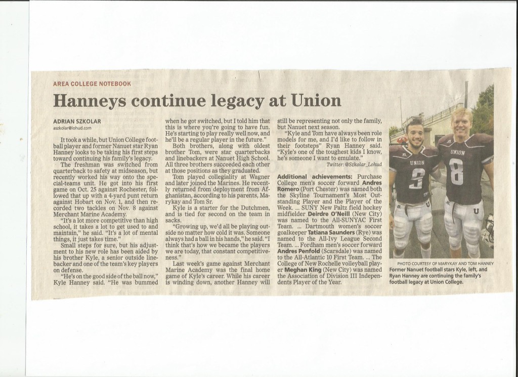 At the end of Senior year, I had suffered a devastating shoulder injury during football recruiting season. I had surgery on my torn labrum by Dr. Cordasco and had to miss basketball and baseball season during my Senior year. I was a starting QB/LB and team Captain, All State, All Section and All County. I came back to be recruited by Union College and was ready in time for summer tryouts. Became a starter as a Freshman!