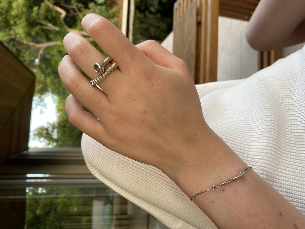 Being a few years out of my post-op experience, my hips feel better than ever. All eight surgical screws that were implanted during my PAOs have since come out. Because these screws can stay in a PAO patient’s body for life, I felt inspired to do something special with mine. The very same screws that I once wore inside my body, I can now show to the world as a necklace and ring. From this, I started a medical jewelry company called Wear Your Strength™. All pieces we create by hand are made out of real medical hardware. I even offer a service to personally work with PAO patients (or other implant-related surgeries) to create custom jewelry out of their very own screws.